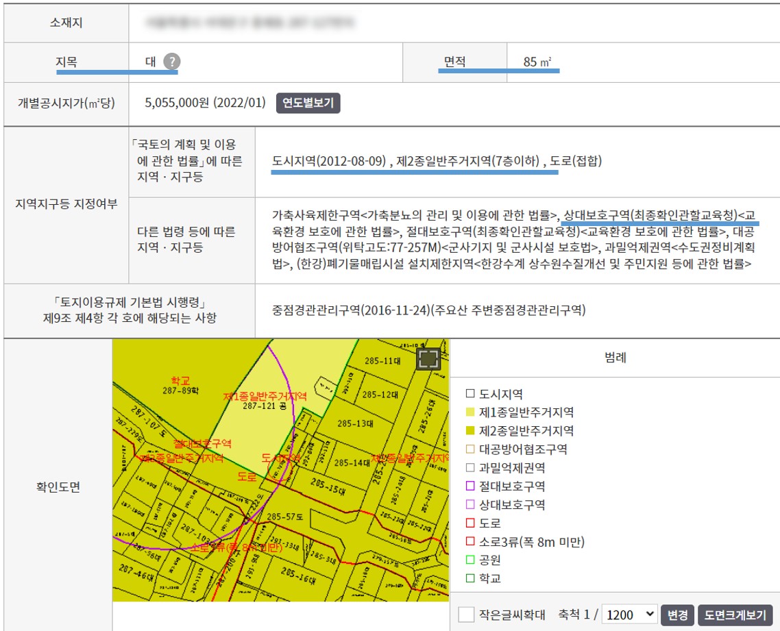 앞서 설명드린 지목, 면적, 용도지역, 용도지구, 지적도 등의 정보가