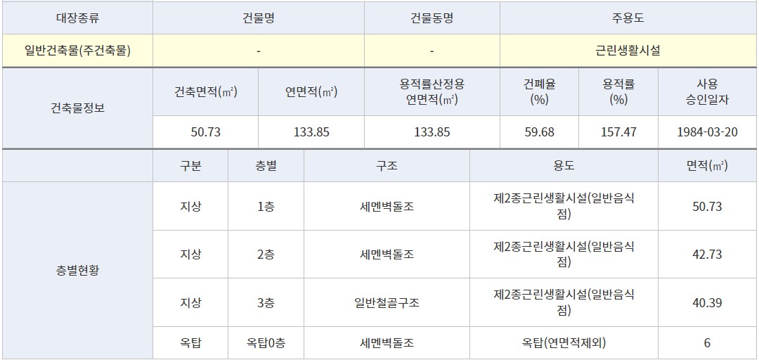 - 주 용도 (예: 근린생활시설, 단독주택 등)