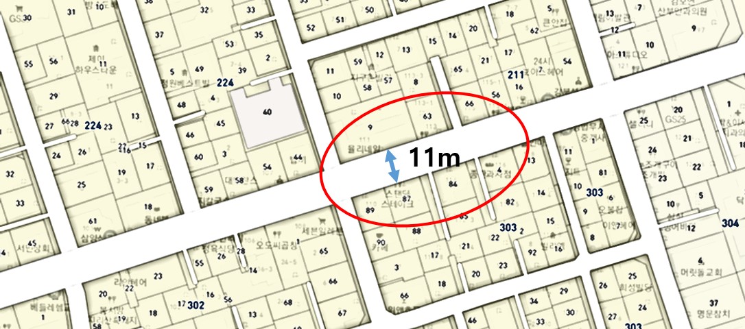 최악의 도로는 12m미만 + 보차 구분이 되어있는 도로 입니다.