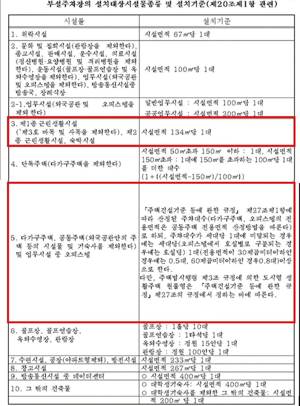건물의 크기에 따라 주차장을 정하는 게 아니라,