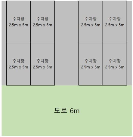 그러나, 토지의 규모가 작아서 주차장 4~5대 정도만 필요로 하다면, 12m 이상이 되어도 괜찮을 겁니다.