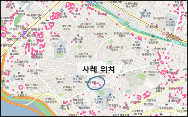 이번 사례 건물은 유동 인구가 많지 않은 동선에 위치해 있으며, 상권 자체도 활성화되어 있다고 보기 어렵습니다.