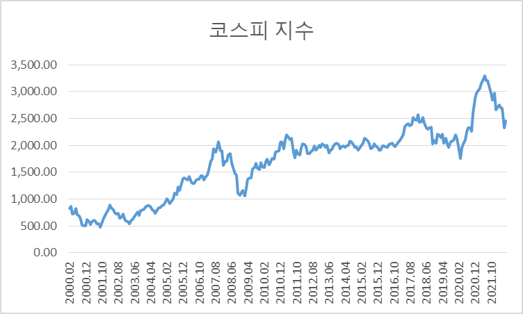 1997년도 외환위기 / 2008년도 서브프라임 모기지 금융위기를 제외하고 지속적으로 우상향하고 있음을 알 수 있습니다..