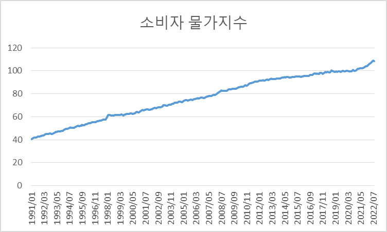 소비자 물가지수 역시 지속적으로 우상향하고 있지요?