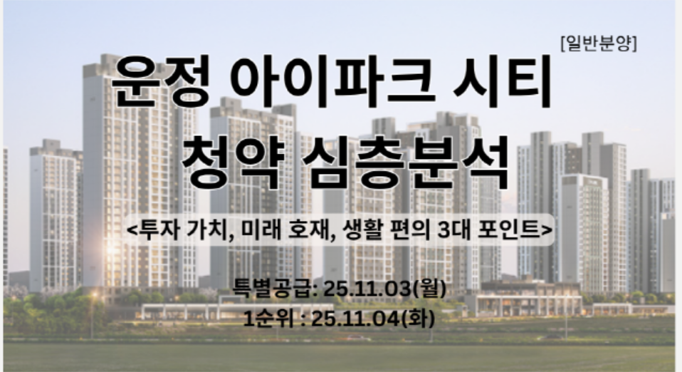| 청약본건 | 운정 아이파크 시티 (84형) | 5.65~6.69억 | 2028.12 예정 | 3,250세대 |