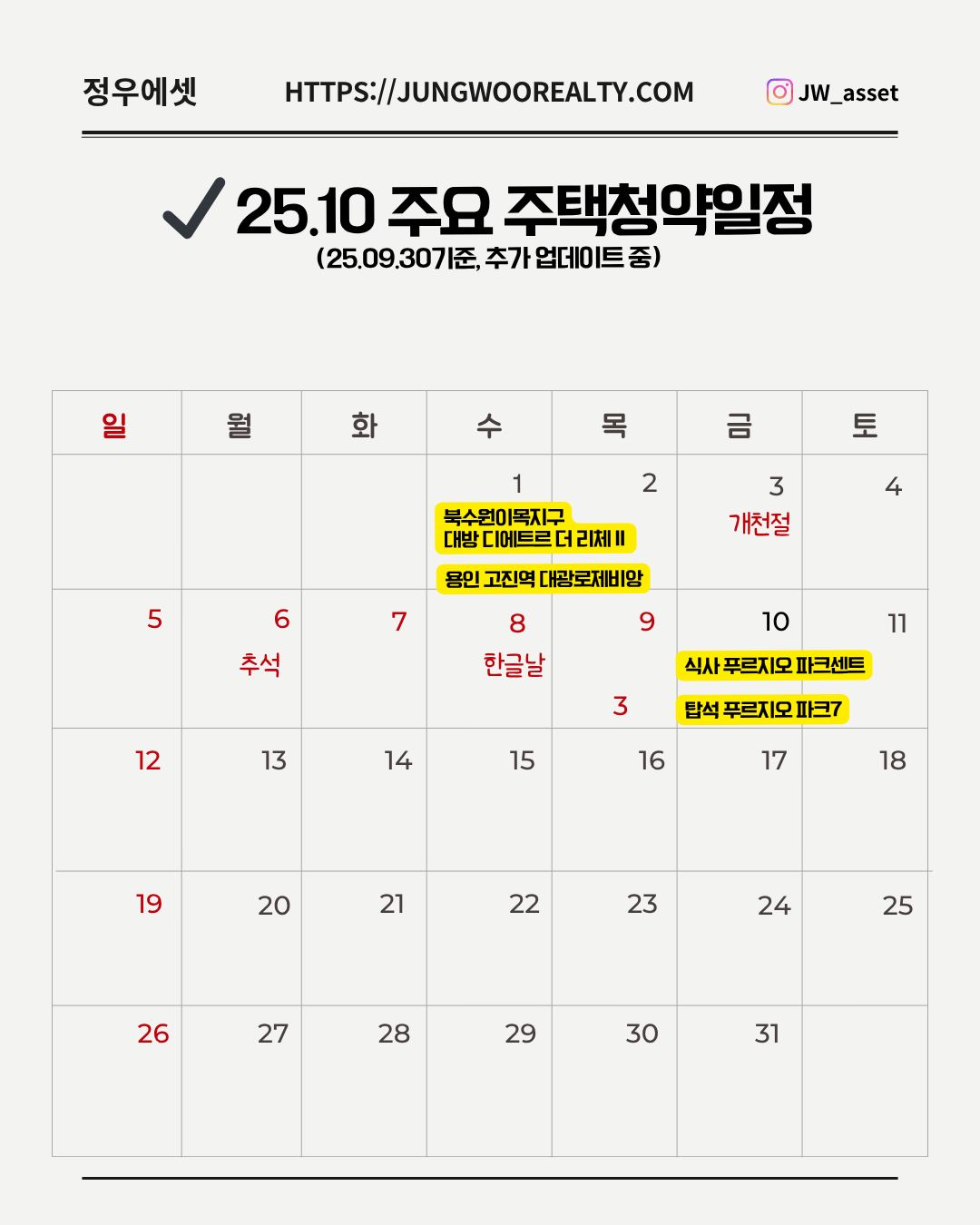 25.10 주요 주택 청약 일정 (25.09.30 기준)