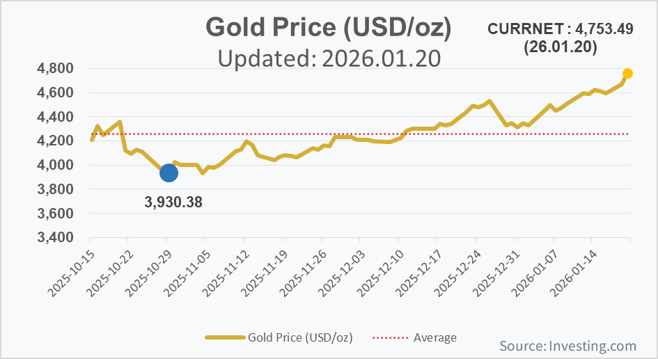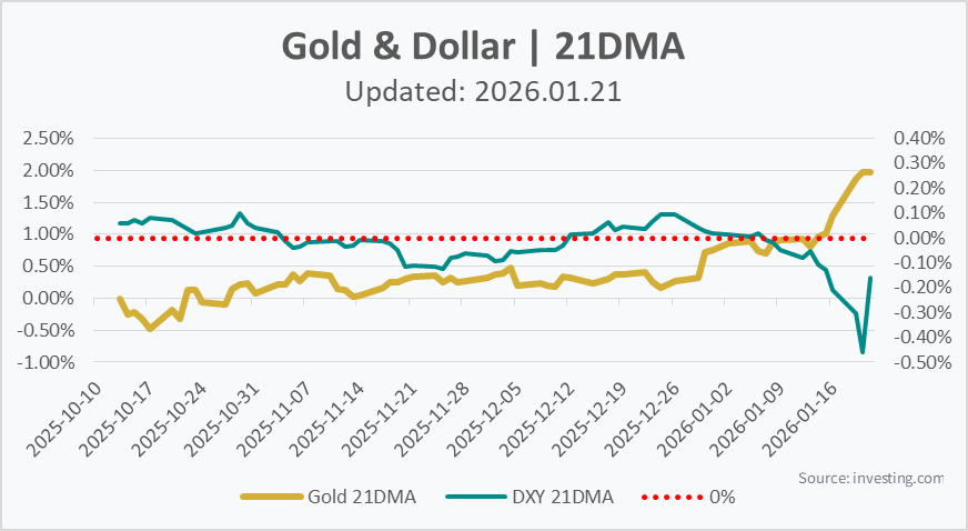- 그린란드 이슈로 인한 미국 유럽 간 긴장감 고조 -> 금 가격에 호재