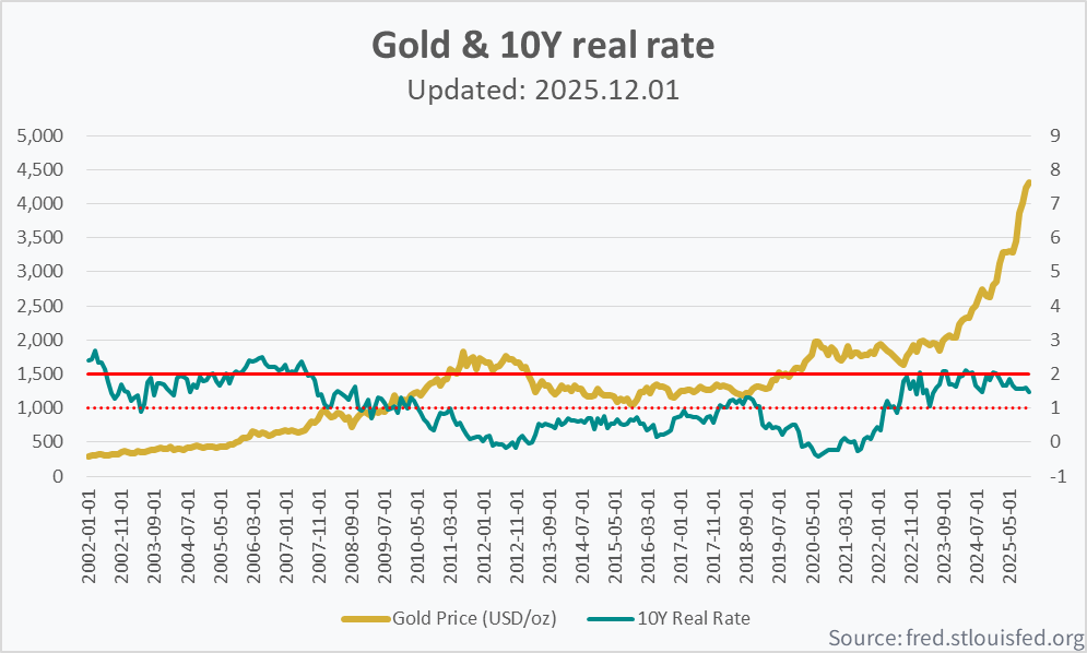 2025.11.30 - [경제, 금융 투자] - [GOLD] 미국 10년물 실질금리와 금현물 투자 분석 및 전망