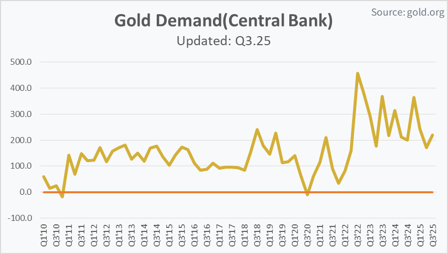 특히, 수치적으로 즉각 반영되지는 않지만, 중앙은행의 구조적인 금 매입 확대는