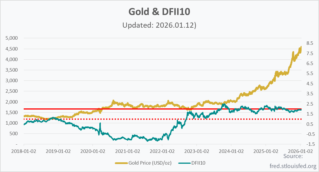 2025.12.11 - [경제, 금융 투자] - [GOLD] 미국 10년 물가연동국채(DFII10) 수익률로 보는 금현물 투자 분석 및 전망