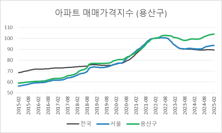 대통령 집무실 이전, 용산정비창 개발, 한강변 초고가 주거지 형성 등의 요인이 복합적으로 작용하며 부동산
