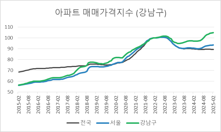 특히, 최근 KB 아파트 매매가격 지수를 기준으로 봤을 때도 강남구는 가격 상승을 기록하며 투자자들의 관심을 받고 있습니다.